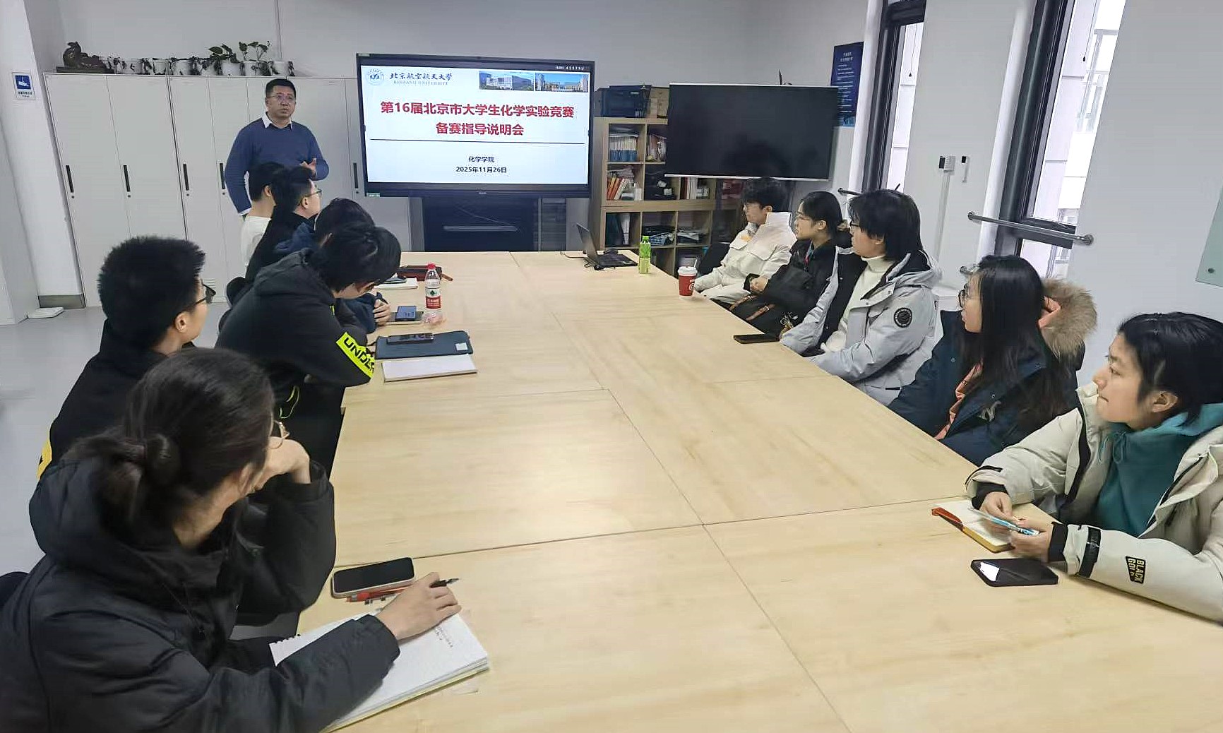 自竞赛启动以来,化学学院领导班子高度重视备赛工作,院长刘明杰、党委书记马千里全面部署、统筹保障资源,并作重要指示,教学副院长田东亮教授牵头全程统筹部署、指导备赛事宜,并协调落实各项资源保障,为备赛工作有序推进奠定坚实基础。10月上旬,王哲副教授牵头负责竞赛校内遴选筹备,并与王婷老师等协同完成校内选拔赛的组织实施,高效完成参赛选手初步遴选。11月下旬,学院组织召开专题备赛指导说明会。会上,田东亮副院长围绕竞赛大纲为参赛学生开展深度解析、明确备赛核心方向;同时,邀请往届竞赛一等奖获得者盛昱皓同学分享实战经验与针对性备赛技巧,为参赛学生提供精准指导;此外,还特别邀请化学教学实验平台无机化学、有机化学、分析化学、仪器分析、物理化学方向的实验负责老师,面向参赛学生进行专项赛前辅导。