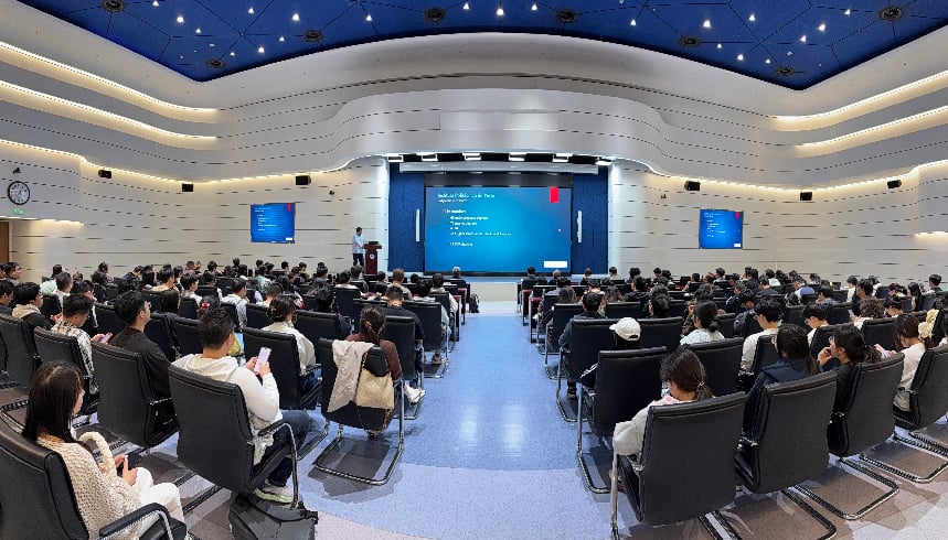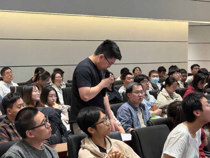 师生们聚精会神聆听,不时记录报告中的重点内容,现场反响热烈。两位教授在讲座结束后与学院师生进行了深入探讨与交流,耐心细致地解答大家在薄膜材料制备、磁电耦合机制以及新能源电池应用等方面的困惑,极大地激发了同学们的科研热情与创新思维。