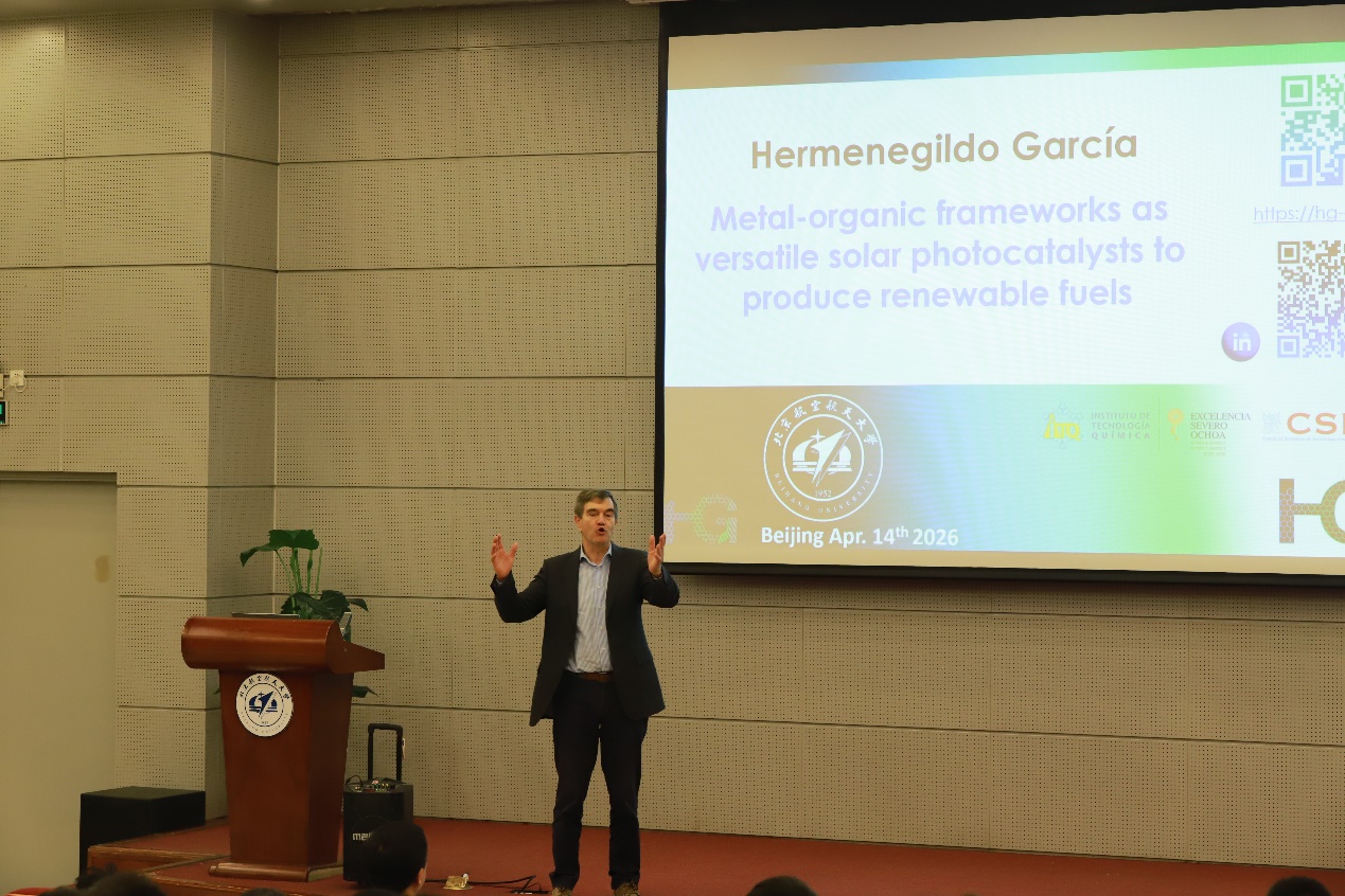 2026年4月14日上午,欧洲科学院院士、瓦伦西亚理工大学的Hermenegildo García Gómez教授在S4-205为北航师生带来了一场精彩纷呈的学术报告。报告由化学学院刘明杰院长主持。