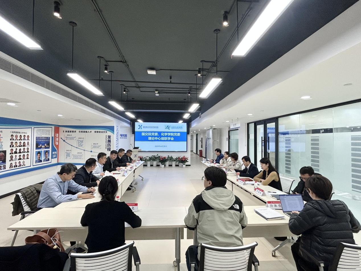 10月29日,国际前沿交叉科学研究院(以下简称“国交院”)党委与化学学院党委理论学习中心组开展联学,专题学习党的二十届四中全会精神,研讨“十五五”规划编制和前沿交叉领域学科融合、青年人才发展等工作。两院理论中心组成员、青年教师代表出席会议。会议由国交院党委书记张蕊主持。