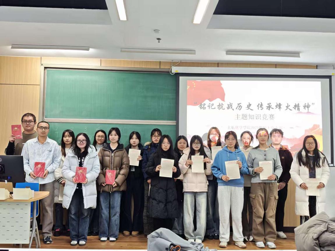 为纪念中国人民抗日战争暨世界反法西斯战争胜利80周年,持续深化支部党员和入党积极分子对抗战历史的理解,传承红色基因,12月21日,化学学院2025级硕士党支部在J3-201教室举办“铭记抗战历史,传承爱国主义精神”主题知识竞赛。支部全体党员和部分积极分子组成9个小组参加活动。